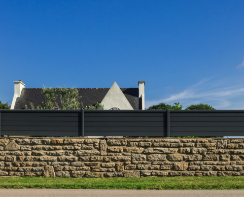 Les systèmes utilisent des lames aluminium thermolaquées, notamment en RAL 7016, très apprécié pour son rendu contemporain. De plus, il est possible d’associer les panneaux aluminium à des lames composite.